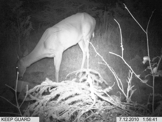Yksinäinen naaraspeura tuli kivelle. Tällä on hyvänä tuntomerkkinä selkeä raita oikeaa lapaluun päällä.
