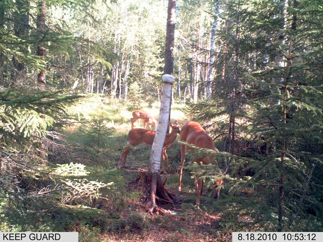 Naaraspeura kahden vasan kanssa. Olivat kivellä vain vähän aikaa, kun yhtäkkiä pakenivat loikkien.