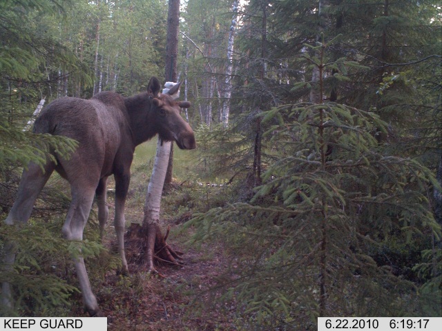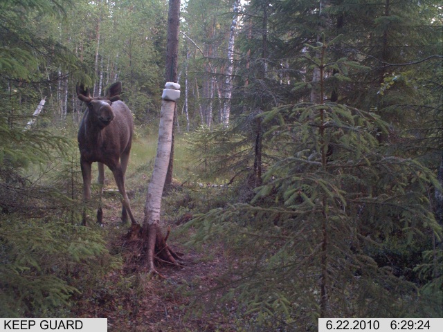 Tulihan se hirvikin kiveä nuolemaan. Varsin pienet sarvet näyttää kasvavan.
