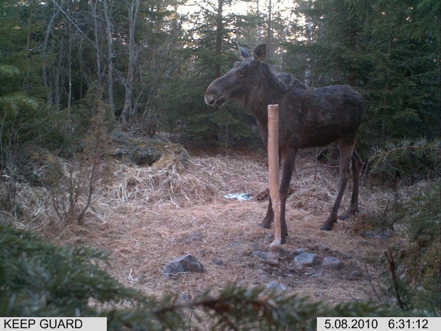 Nuori hirvi sonni, jolle uudet sarvet ovat alkaneet kasvaa. Hyvä tuntomerkki on huono risainen parta.