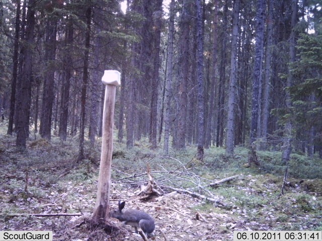 Metsäjänis kävi moneen otteeseen tolpalla tai sen vierellä.