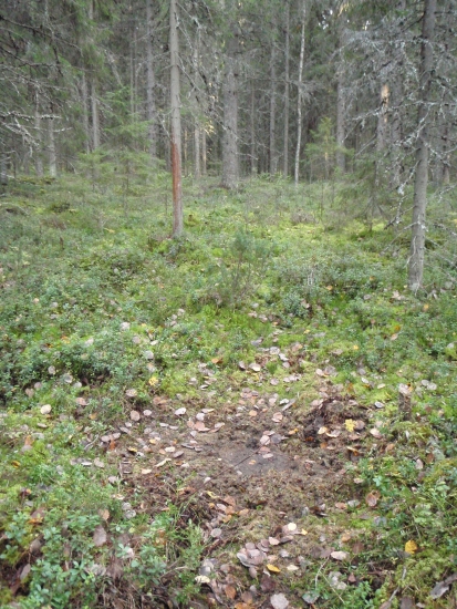 Pystyläjänmäessä nuolukiven vieressä on hirvisonni syyskuussa pitänyt kiimakuoppaa.