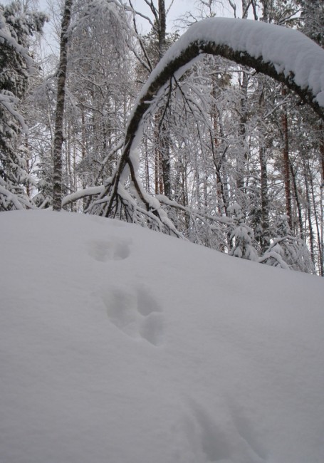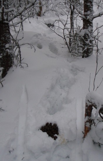 Uunituoreet hirvenjäljet. Pyy lähtenyt kiepistään.