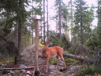 Pahalakso 29.6.-12.7.14 Lehmä ja vasaLehmä ja tuplavasatNaarashirviMuut vierailijat Parin viikon aikana kivellä kävi 2,5-vuotias naaras, lehmä vasan kanssa, tuplavasaporukka ja pari naaraspeuraa sekä mäyrä.