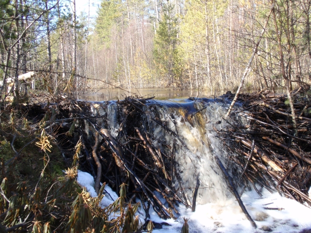Kruunuojalla majavat ovat touhunneet aktiivisesti. Tässä niiden tekemä pato.